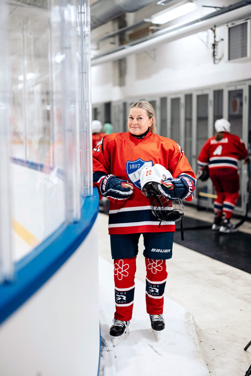 – Vaihdoin lajin jääkiekkoon, HIFKin Harrastegimmoihin. Luistelu sujuu, mutta ylämummoa en ole yrittänyt, ettei mene koko mummo maaliin. Mutta kaikki pisteet olen kerännyt: yhden maalin, yhden maalisyötön ja yhden jäähyn.